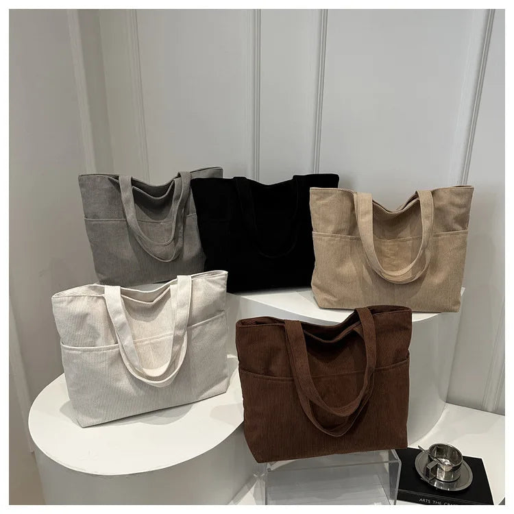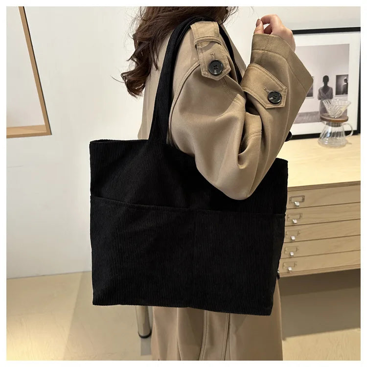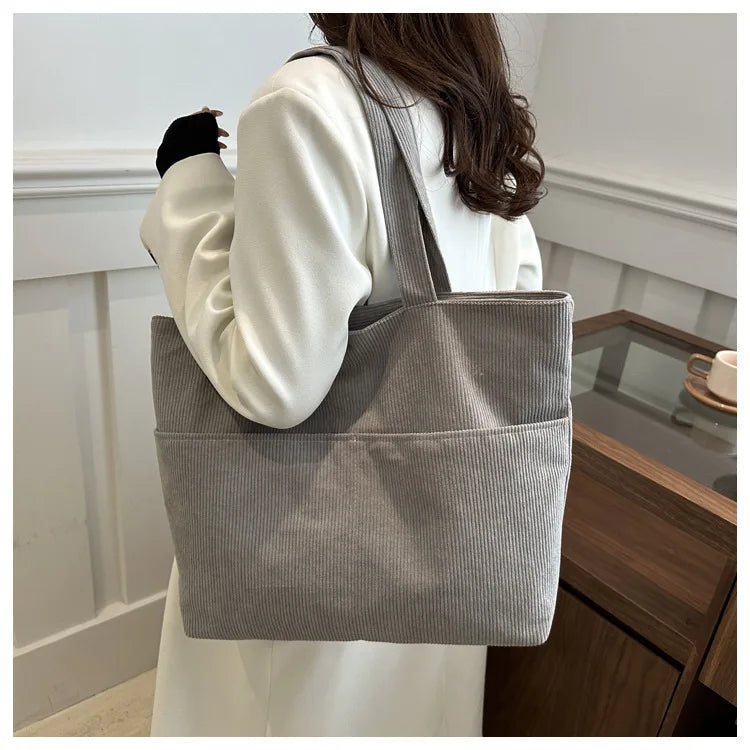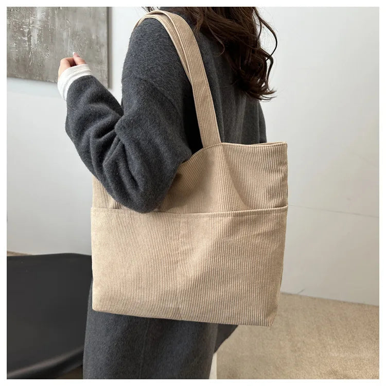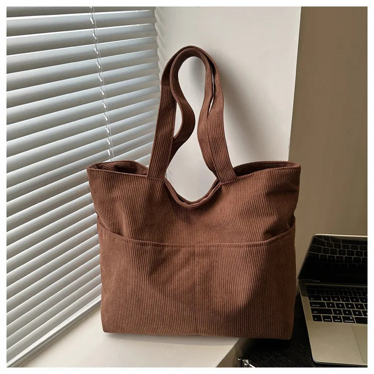 Découvrez un sac pensé pour s’adapter à toutes les situations du quotidien. Conçu avec du velours côtelé, le modèle associe à la fois légèreté et authenticité. Le format spacieux, ses deux poignées et une fermeture éclair sécurisée en font un choix parfait pour transporter facilement vos indispensables.
